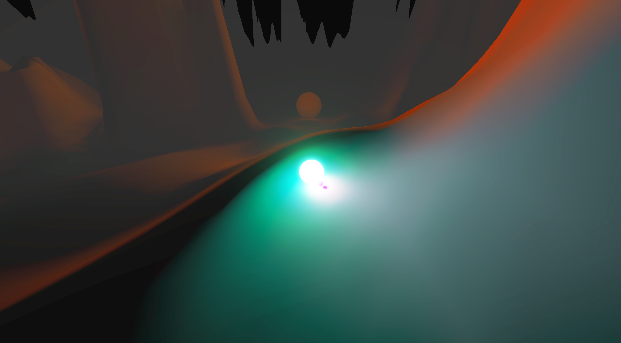 The original gameplay concept was to shroud the world in fog, and have the player use the sense ability to navigate the world, detect enemies, and locate lost spirits. After saving a spirit, it will help you by acting as regenerating ability tokens, to be spent on a boost or a momentary shield. The large enemies would chase you around in growing numbers, and they will destroy you if they touch you even once. So kind of like tag if everyone else is just trying to tag you.